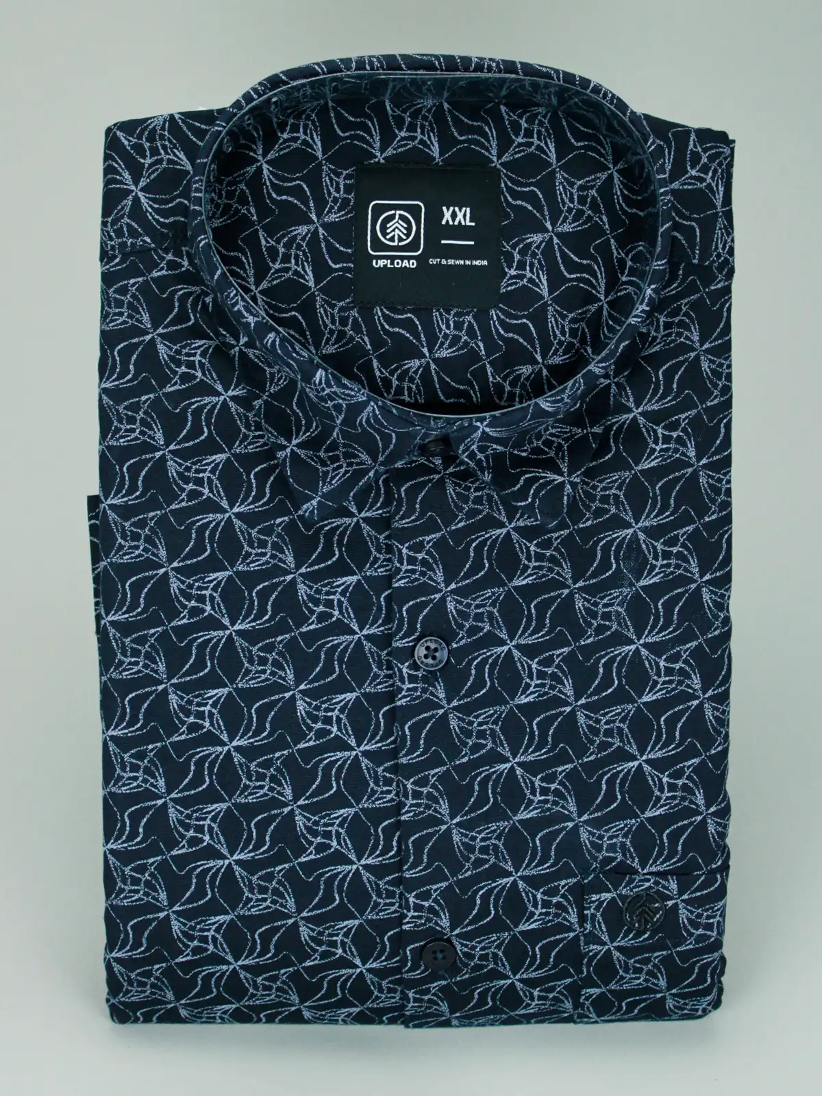 Introduce an artistic edge to your wardrobe with the Men’s Abstract Printed Shirt. The deep Navy Blue base provides a sophisticated backdrop for the unique and eye-catching Starburst Pattern. This modern print makes the shirt a perfect statement piece, easily worn with jeans for a casual look or dressed up with chinos for a creative, smart-casual event.
