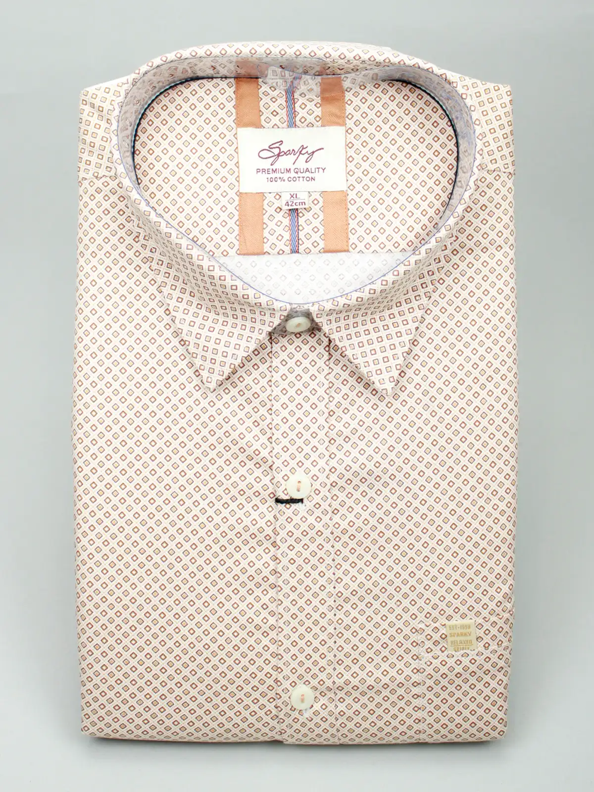 A modern twist on a classic! This Cream Cotton Shirt features a detailed, all-over rust and brown geometric micro-print. Made from 100% premium cotton, it offers a refined look that is perfect for smart-casual events, office wear, or a sophisticated night out.