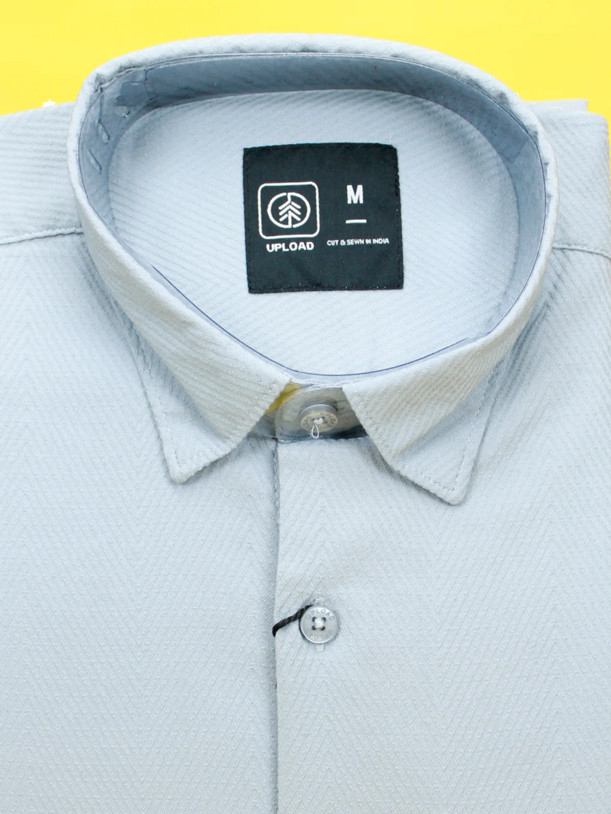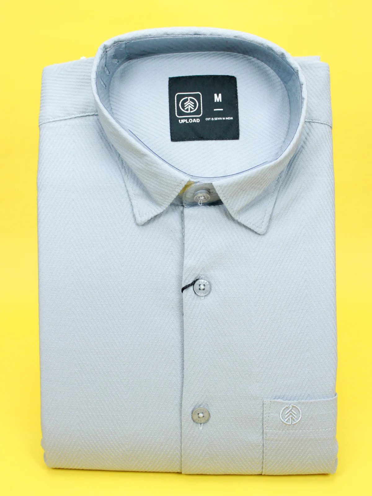 A versatile and modern Light Gray Shirt for men. It features the same fine herringbone textured fabric for a sophisticated finish and comfortable wear. An essential wardrobe piece, perfect for pairing with any outfit, from business-casual to weekend looks.