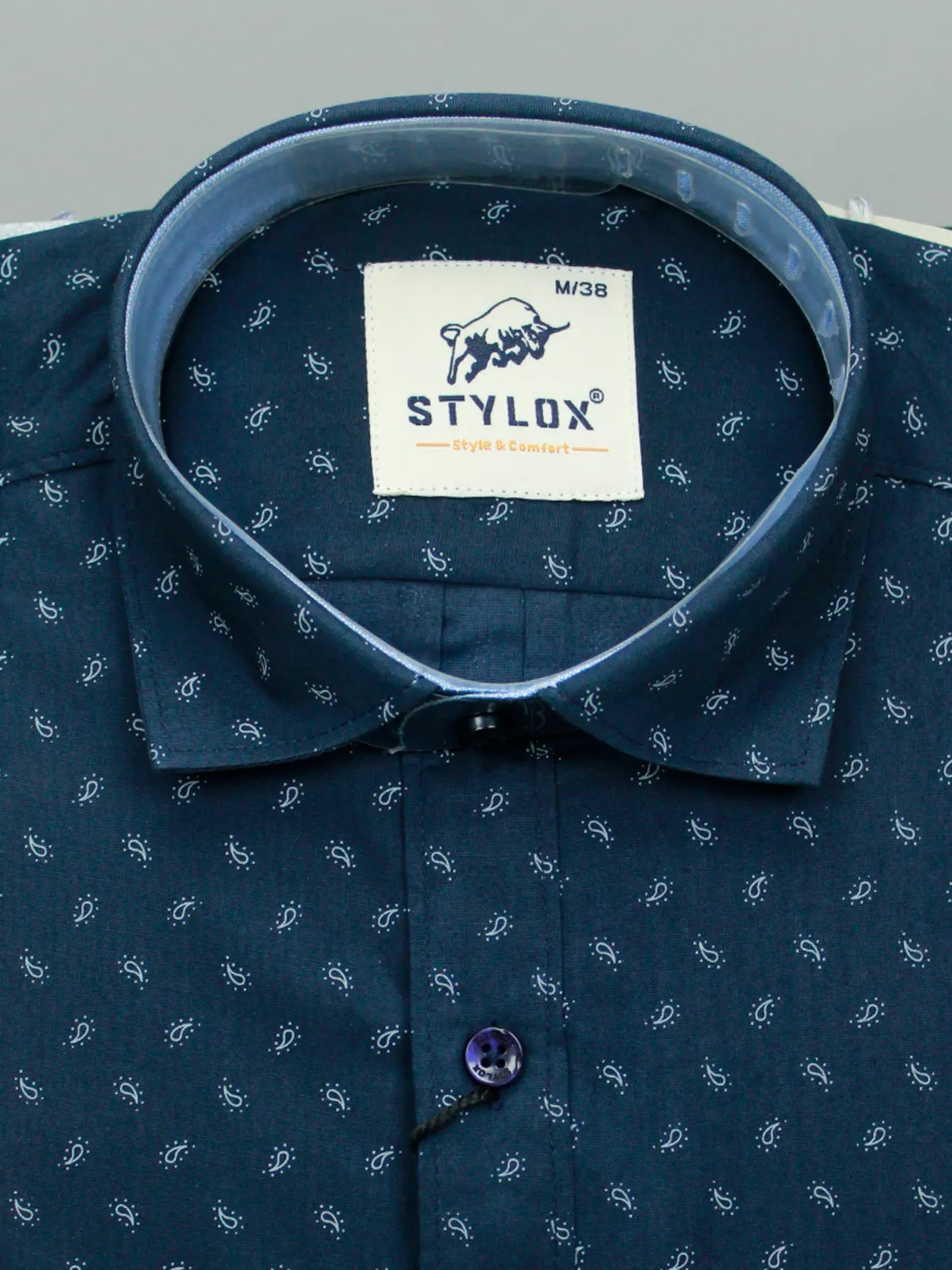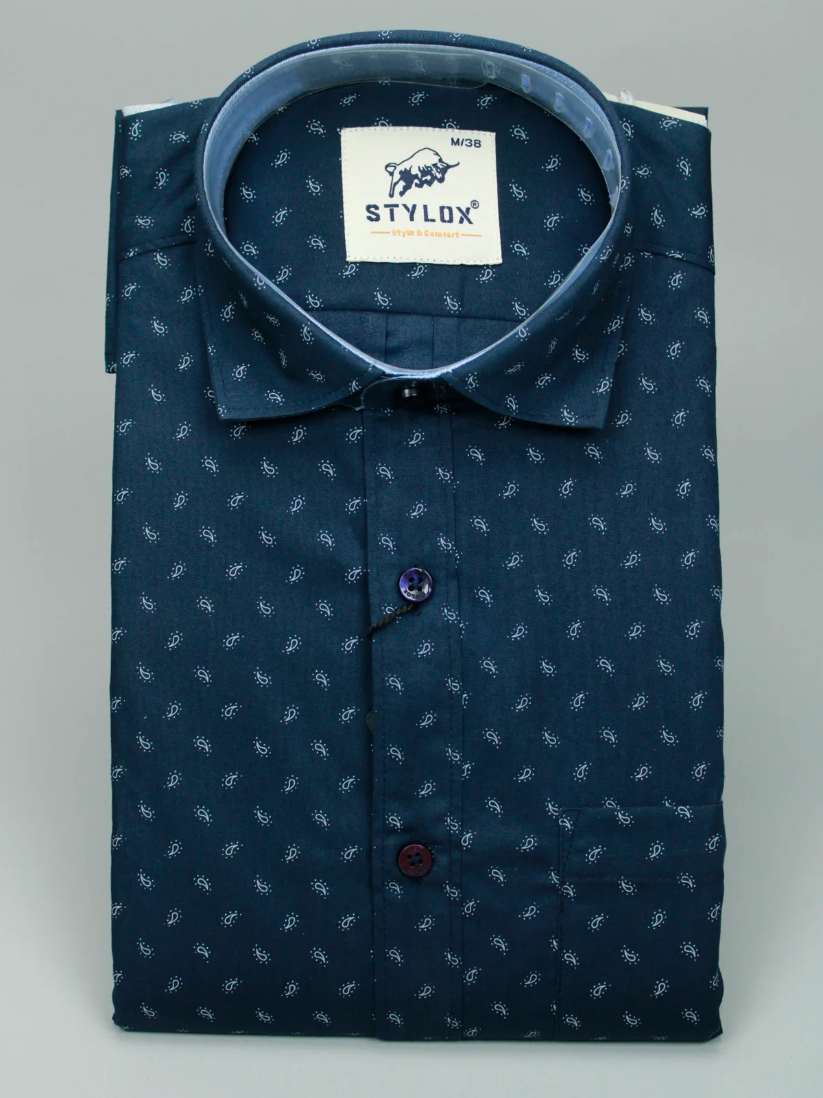 Achieve a sharp, contemporary look with this Men’s Navy Blue Micro-Print Shirt. The deep, versatile navy base is enhanced by a subtle white micro-pattern (resembling small diamonds or floral motifs), adding a refined texture and dimension. Featuring contrasting inner collar detailing, this shirt is perfect for evening wear, smart-casual settings, or any time you need a polished, modern finish.