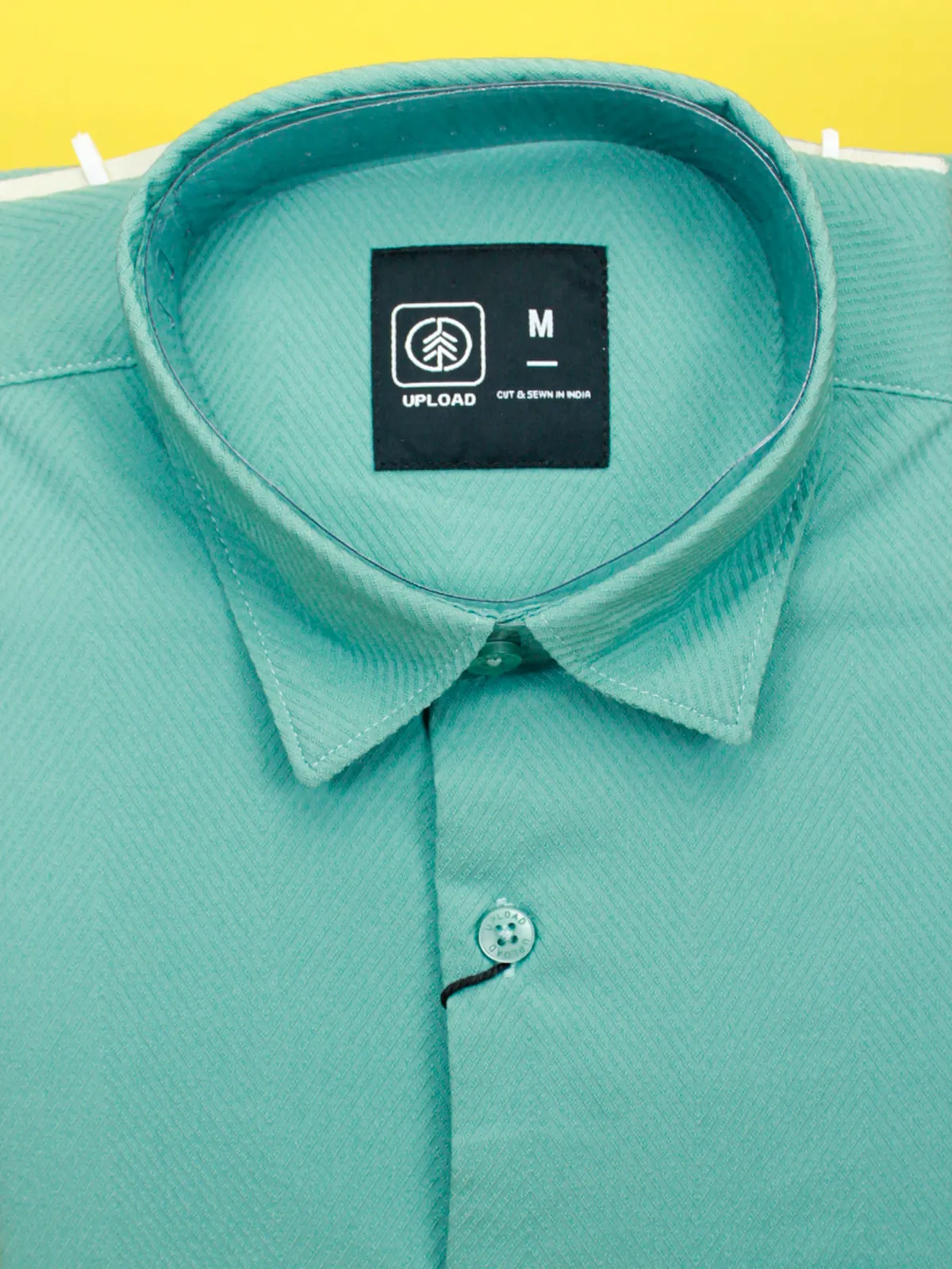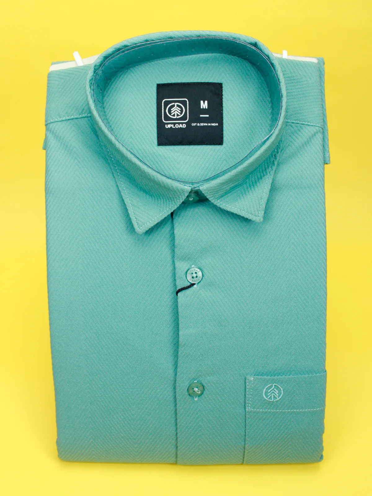 Be the first to review “Men’s Seafoam Green Herringbone Shirt | Textured Casual Blend”