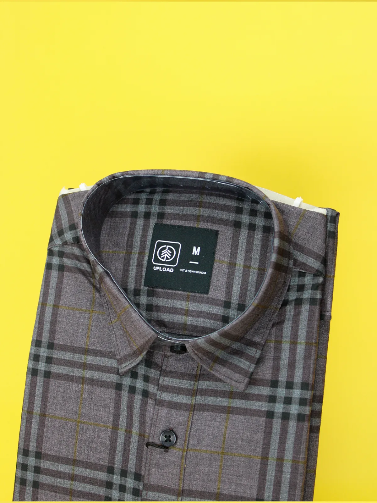 Men’s Slim Fit Carbon Grey Colour Cotton Checks Shirt.